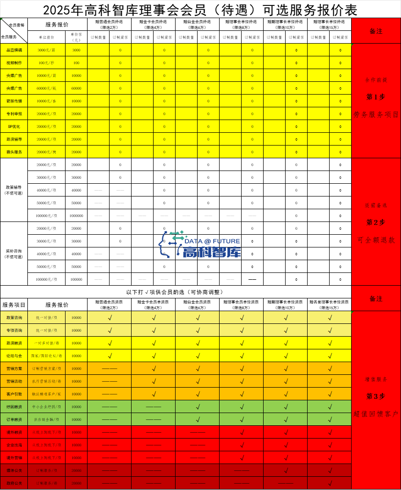 2025年高科智库理事会会员(待遇)可选服务报价表
